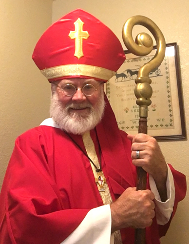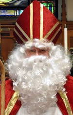 Experienced St. Nicholas since 2000. Often "interrupts" service to hand out chocolate gold coins and then tell 3-4 St. Nicholas stories. Makes sure everyone has a coin before leaving.
