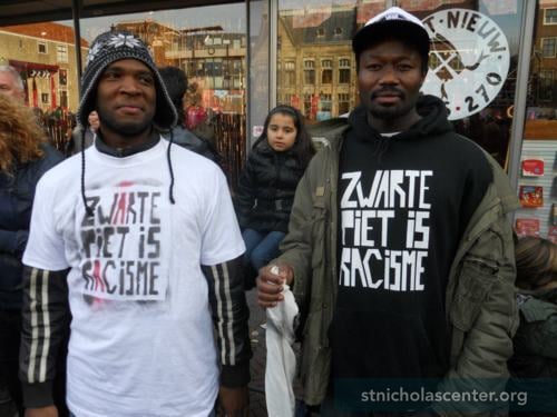 ‘Zwarte Piet is racism’. On Saturday 12 November 2011, two young black Dutchmen stood in silence in T-shirts with this phrase in Dordrecht, the town in the west of the Netherlands where the official televised arrival of St Nicholas took place that year. At the very least for a few hours, such a place is the focal point of nationwide attention. Therefore this television broadcast is highly prized by Dutch municipalities as marketing vehicle for the city as a whole. Some 60,000 visitors were expected in Dordrecht itself, with an estimated television audience of 1.8 million. With this in mind, the quarter million euros budgeted for staging the parade were considered well-spent by the city council.2 Under such circumstances, it is only natural that local authorities will try to avoid anything that might compromise the spectacle. On the other hand for anyone intent of making a point, this is a prime occasion.