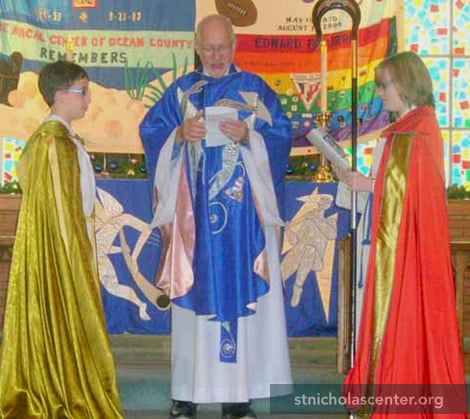 Feast of St. NicholasA Youth Bishop is installed as part of the celebration of the Feast of St. Nicholas. Patterning the ceremony after the tradition at Salisbury Cathedral, the rector prays for the new bishop, then vests the youth with a cope. The former Youth Bishop presents the crozier that was specially carved with symbols for St. Peter (crossed keys), the parish patron, and St. Nicholas (three coins). The newly installed bishop sat in the bishop's throne during the Eucharist and joined the rector in blessing the people at the end of the service. Carrying out St. Nicholas' custom of gift giving, the Youth Bishop gave everyone the gift of an icon prayer card of St. Nicholas. In this way St. Nicholas is remembered and the role of children in the church is celebrated. The installation of girl as Youth Bishop also commemorated the role of women who serve as ordained bishops, priests and deacons in the Episcopal Church.