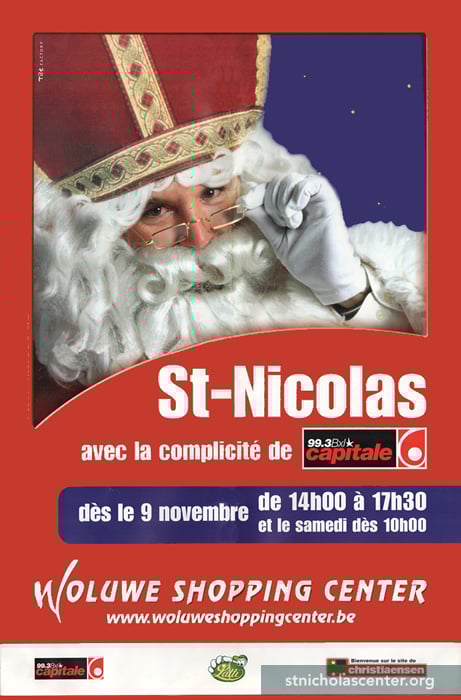 Poster advertising St-Nicolas & Sinterklaas presence at the Woluwe Shopping Center in Brussels