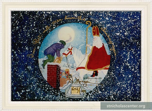 Soon Piet will peer down the chimney again Art Print Doris Morgan Atlanta, Georgia, USA 1994 5 × 7 inches Print #642/1000 Sold by the Pella, Iowa, Chamber of Commerce