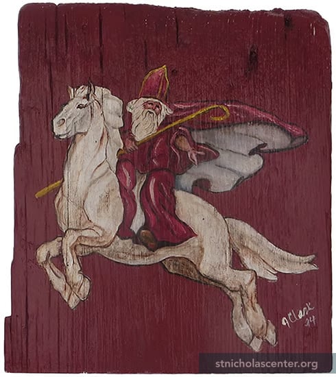 Sinterklaas Handpainted Plaque Janna S. Clark Janna S. Clark Artworks Morrison, Ilinois, USA 1994 Painted driftwood from the Mississippi River 6 × 7 inches