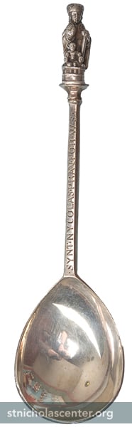 Christening 'Saint' Spoons were once commonly given at the time of Baptism. They were a useful gift which helped teach children about their name-day saints. This one is from England.