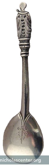 Christening 'Saint' Spoons were once commonly given at the time of Baptism. They were a useful gift which helped teach children about their name-day saints. This one is from England.