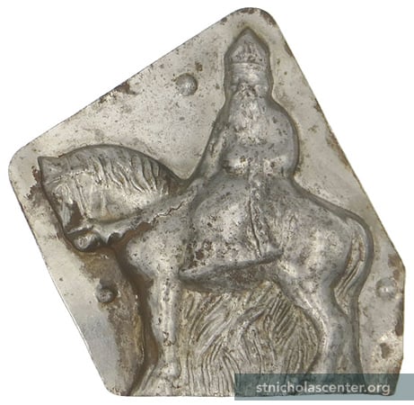 Chocolate Mold Anton Reiche Dresden, Germany Tin 3 1/2 × 3 3/4 inch figure Unmarked Click for back view Click for Vaillancourt chalkware figure Click for Moni's Folkart chalkware figure Click for wax figure