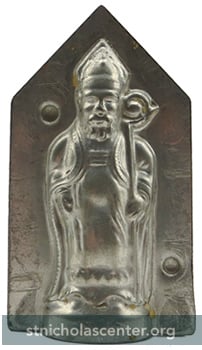Chocolate Mold Europe Metal 1 3/4 x 3 1/8 inches; 2 3/4 inch figure Unmarked Click for back view "Chaulkolate" from mold