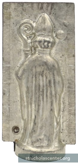 Chocolate Mold Sommet Paris, France before 1938 German silver 2 3/4 x 5 3/4 inches; 5 3/8 inch figure Sommet molds were made from 1887-1938 Click for back view "Chocolate" figure from mold Click for chalkware figure