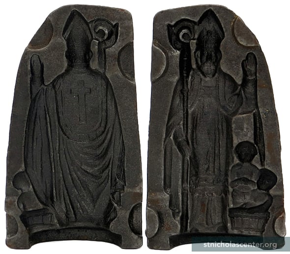 Chocolate & Marzipan Mold France circa 1910 Cast iron 2 5/8 x 5 5/8 inches Early 20th century, used by CHOCOLATIERS-CONFISEURS à Riems for both chocolate and marzipan Click for figure from mold and outside of mold