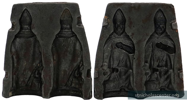 Chocolate & Marzipan Mold France circa 1910 Cast iron 2 3/4 x 3 inches Early 20th century, used by CHOCOLATIERS-CONFISEURS à Riems for both chocolate and marzipan Click for inside mold and figure cast in mold