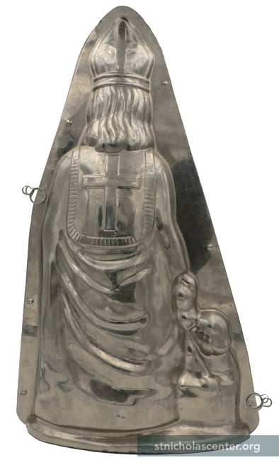 Chocolate Mold Darchambeau Charleroi, Belgium before 1972 Metal 19 3/4 inch figure Very large, heavy mold Darchambeau distributed Vormenfabriek molds make in Tilburg, the Netherlands Click for back view Click for chalkware figure