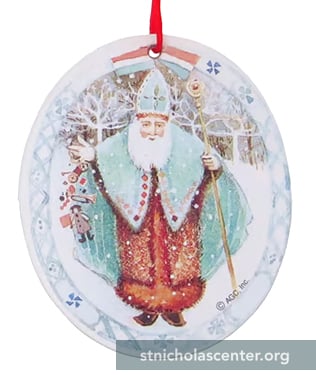 Ornament American Greetings Cleveland, Ohio, USA 1998 Cardboard 2 1/2 x 3 inches Santa ornament from greeting card