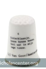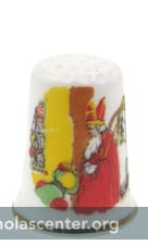 Thimble Birchcroft China The Netherlands Made in England 2001 China 7/8 x 1 1/8 inch Click for back view with Sinterklaas song, Sinterklaasje, bonne, bonne, bonne