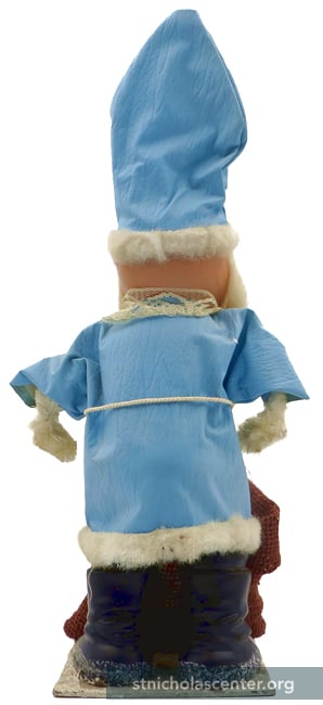 Candy Container France ca 1950 Celluoid, vinyl, cardboard, burlap, mica 14 3/4 inches Click for back view