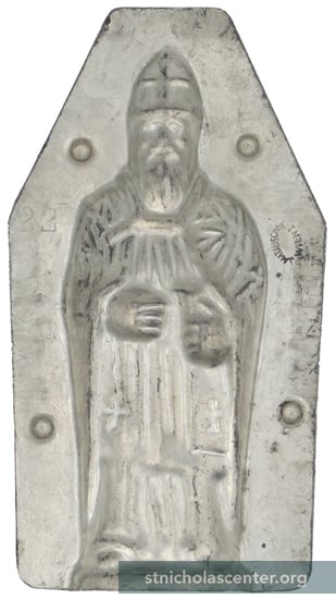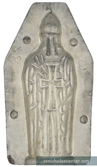 Chocolate Mold J Matauschek Vienna, Austria Tin 3 x 5 3/8 inches; figure 5 inches Mold #22 Click for back view Click for chalkware figure
