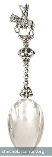 Sinterklaas Spoon Leeuwarden, the Netherlands 1975 Dutch silver 1 13/16 × 8 inches Hallmarked, Dutch Lion, F, P, maker unclear Click for detail