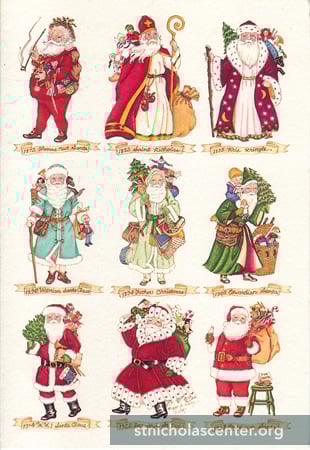 Santa Through the Ages Christmas Card Peggy Jo Ackley Renaissance Greeting Cards Springvale, Maine, USA