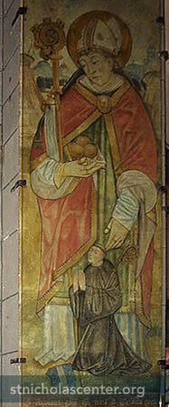 S. Nicolaus Fresco Maria Laach Abbey Laacher See, near Andernach, Germany 1500 The fresco near the entrance to the abbey church was painted in 1500.
