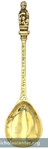 Spoon Levi & Salaman Birmingham, England UK 1909 Sterling silver gilt 4 3/8 inches Hallmarked with L&S;, anchor, lion, k Click for detail