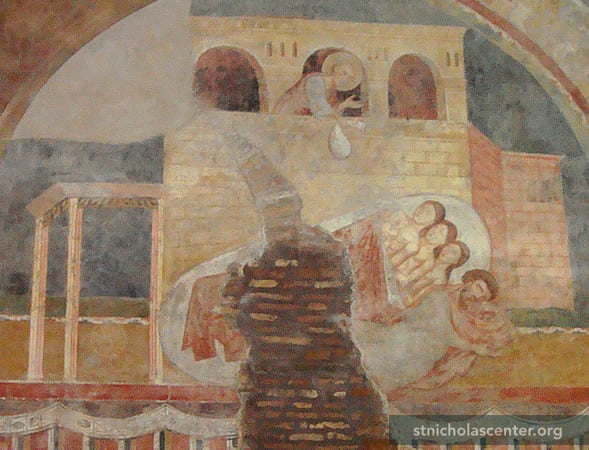Charity of St. Nicholas Fresco Basilica di San SabaRome, Italy The fresco, in the left nave, is from the late 11th or early 12th century.