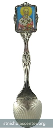 Spoon Serbia 2012 Metal with enamel 4 1/8 inches Special slava spoon used to eat zhito/koljivo, the traditional boiled wheat dish served for the family's patron saint festival. One of a set. Click for detail