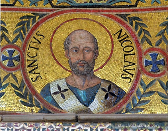 The Cappella Palatina is the royal chapel of the Norman kings of Sicily located on the ground floor at the center of the Palazzo Reale. This stunning Byzantine mosaic dates from 1160. St. Nicholas is shown as one of the five fathers of the church.