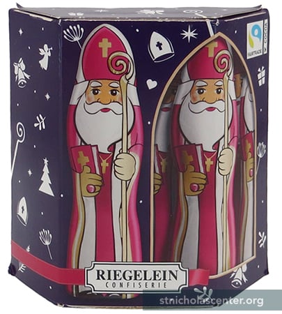 Chocolate Box Riegelein Confiserie Cadolzburg, Germany 2025 Milk chocolate Box 3 3/4 x 4 inches Each box contains 9 foil-wrapped milk chocolate Nicholases Click for chocolate Nicholas