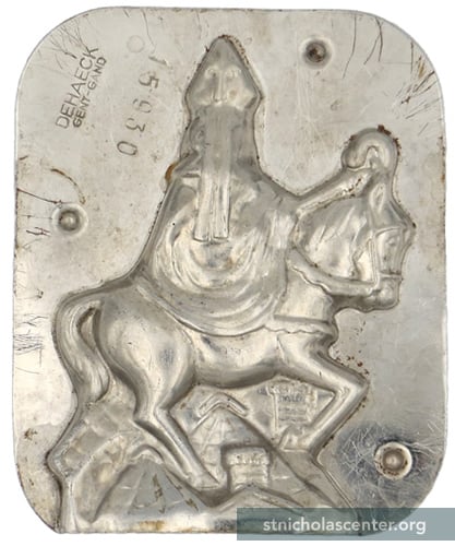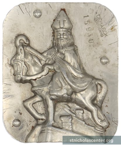 Chocolate Mold Dehaeck Ghent, Belgium ca 1060s Stainless steel 3 3/4 x 4 1/2 inches Mold #15930, made by Vormenfabriek, Tilburg, the Netherlands, for distribution in Belgium Click for back view Click for Rich Connolly's chalkware figures one and two And another