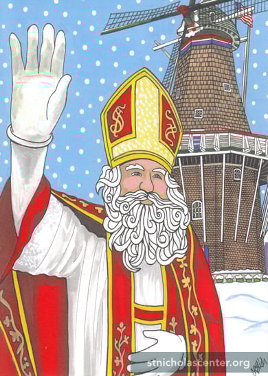Sinterklaas on Windmill Island Greeting Card Carolyn Stich Carolyn Stich Studio Holland, Michigan 2022 5 x 7 inches Available from CarolynStichStudio - Etsy