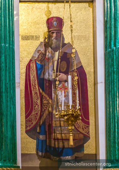 Saint Nicholas in the iconostas in St. Isaac's Cathedral in St. Petersburg, Russia, the 4th largest cathedral in the world.