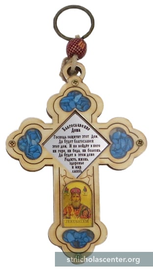 Icon Cross Laser Art Holon, Israel 2010 Laser-cut cross, semi-precious stones; plexiglass cover 3 1/4 x 4 1/2 inches + hanger