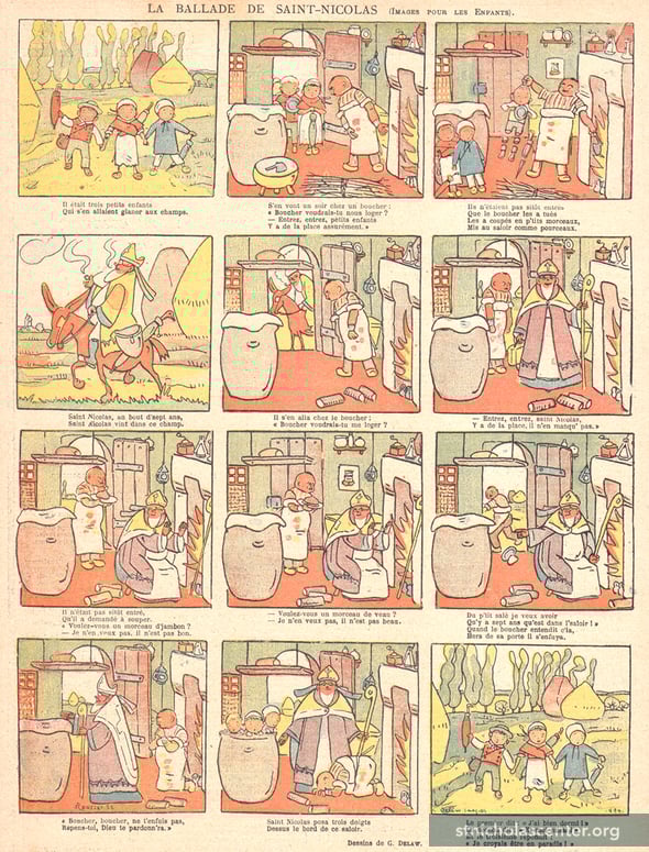 La Ballade de Saiint-Nicolas Illustration Georges Delaw (1871 - 1933) Le Rire Paris, France January 13, 1900 8 3/8 x 11 1/2 inches This was a page for children on the back cover of the French humor magazine "Le Rire."