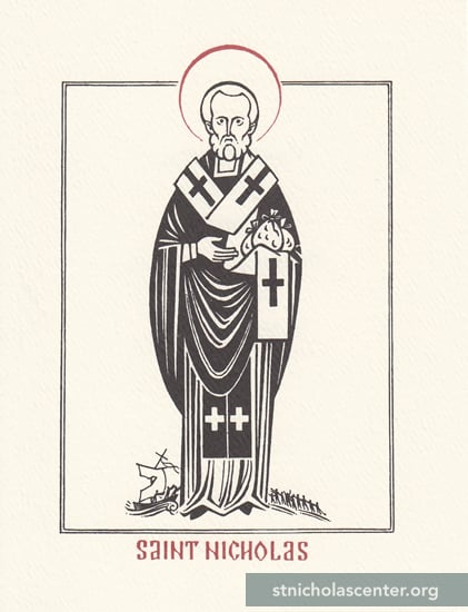 Saint Nicholas Note Card Holy Myrrhbearers Monastery Otego, New York 2003 4 1/4 x 5 1/2 inches "Saint Nicholas,the helperof childrenand those in distress,protect usby your prayers."