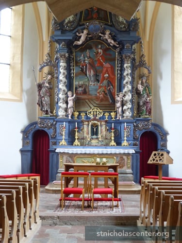 The pilgrimage church was first documented in 1139. It was reordered in Late Gothic style in 1517 and later in Baroque. The striking church stands as a landmark on a large rock promontory known as Nikolausberg. It is a popular place for weddings.