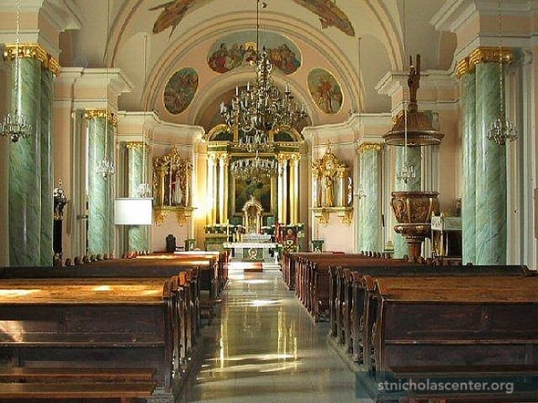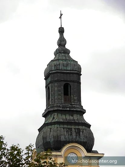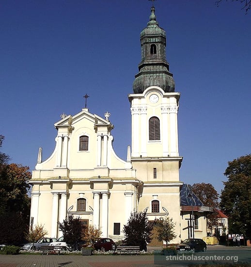 The church is on the market square in Stary Fordon; it is the oldest religious building in Fordon, though most of it dates from the interwar years. It is a continuation of the medieval parish of Wyszogród, dating back to the early 1400s. The new part was built in 1927—extending the nave and enlarging the windows. Damaged by bombing in 1939, the church was closed by the German occupation, and the priests publicly executed. Renovation followed the war. Lightning burnt the tower down in 1980. Renovation in 1982 changed the tower cupola, covering it with copper. Renovations continued in the 1990s.
