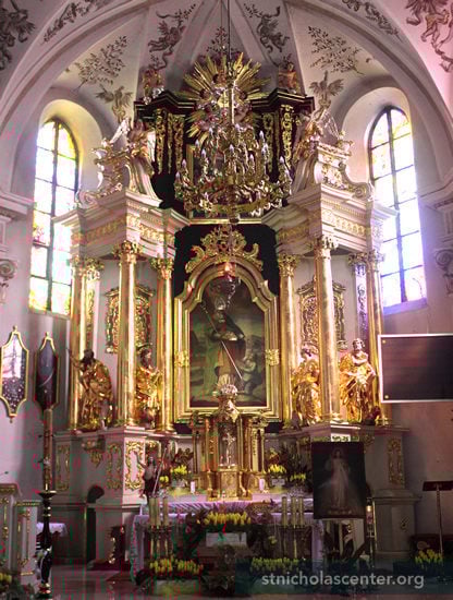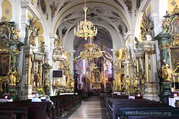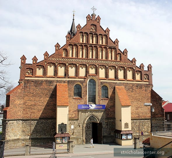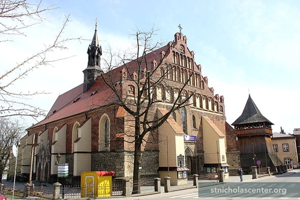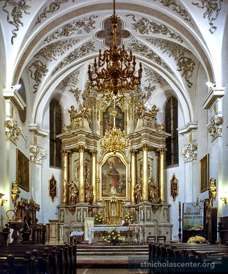The church was built from 1440 - 1445 in place of an earlier church that burned. Damaged by fire in 1665, it was restored in the Baroque style. The church was named a Minor Basilica, the Shrine of Our Lady of the Rosary, in 1998. It has been the collegiate church with the chapter since 2003.