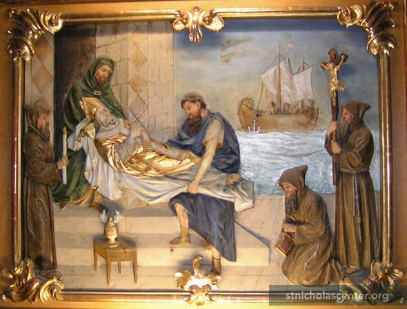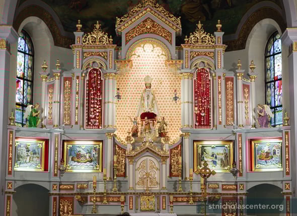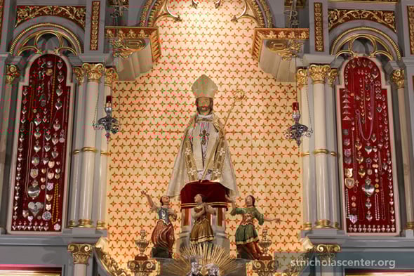 The miraculous figure of Saint Nicholas that survived a fire in 1616 that consumed the entire village.