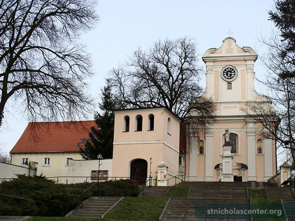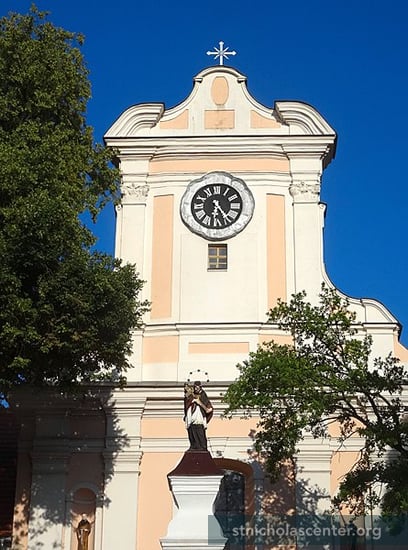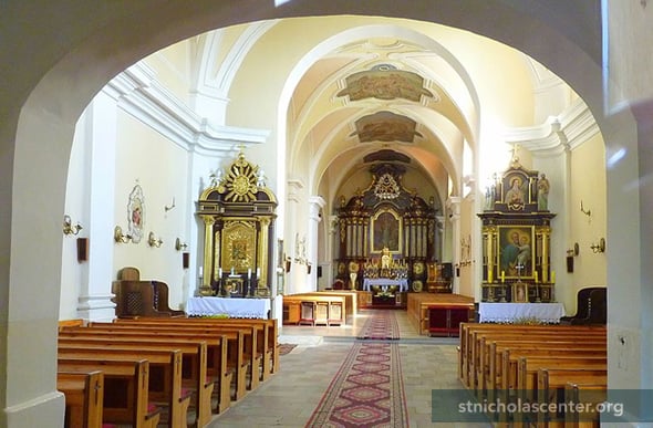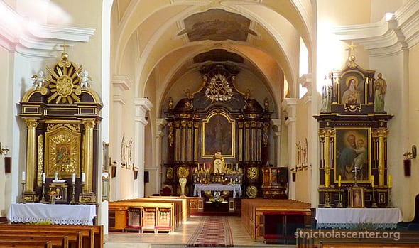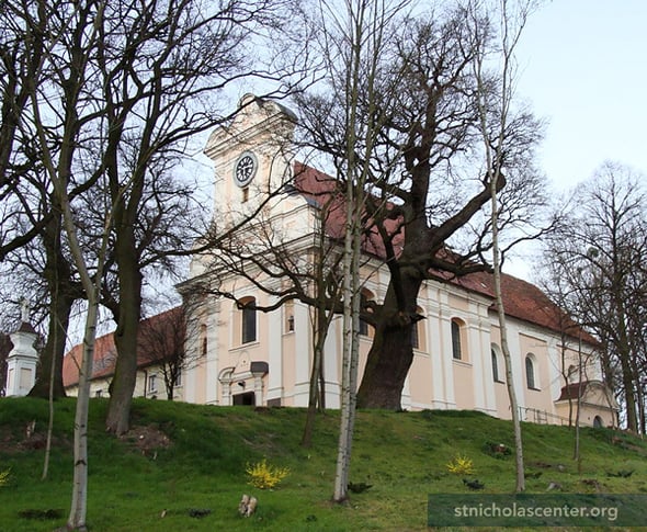 There has been a church here since the 1100s—several different wooden monasteries and buildings. Fire completely destroyed the complex in 1720. It was rebuilt by 1731 and over the next years the church was given a stone floor, vault, clock in the facade, and oak for five new altars. The monastery was dissolved in 1829 and the former monastery church became a parish dhurch in 1833. In 1911 the nave was extended, a lodge, and large chapel added. During World War II the church was devastated—walls damaged by shells; altars, pews and pulpit destroyed; roof, windows and doors missing. The church was rebuilt in 1948 with major renovations in 1980 and 1996.
