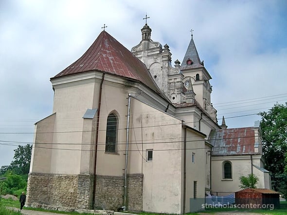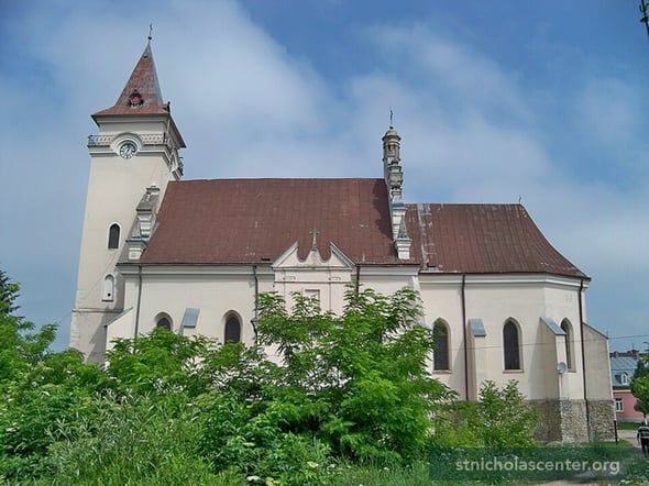 The parish was founded in the early 1400s. A wooden church rebuilt after a fire in 1509. The brick church was built in 1538. At the end of the 1500s two chapels and a tower were added. The sanctuary was renovated from 1804-07, 1862, 1896, and 1936. The church was closed from the 1940s to 1991. It was renovated from 1969-1973. Reconstruction of the exterior and main altar was completed in 2000.