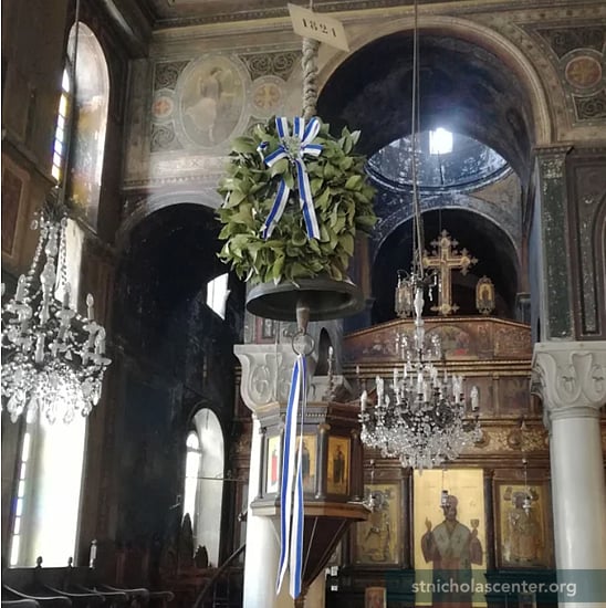 The church was built in the 11th century and repaired in the 1700s following damage by a cannon ball. It was repaired again in the 1700s and restored again in the 1970s. It first rang in 1821 and was kept in a special crypt during the Turkish occupation that forbid bell ringing. The bell rang in 1933, as the first church in Athens to have a bell tower following the Greek Revolution, when bells were again allowed following the end of Ottoman rule. It was also the bell first to ring following liberation from the German occupation in 1944. The bell rings each year on Greek National Day. The church is the oldest iln Athens.
