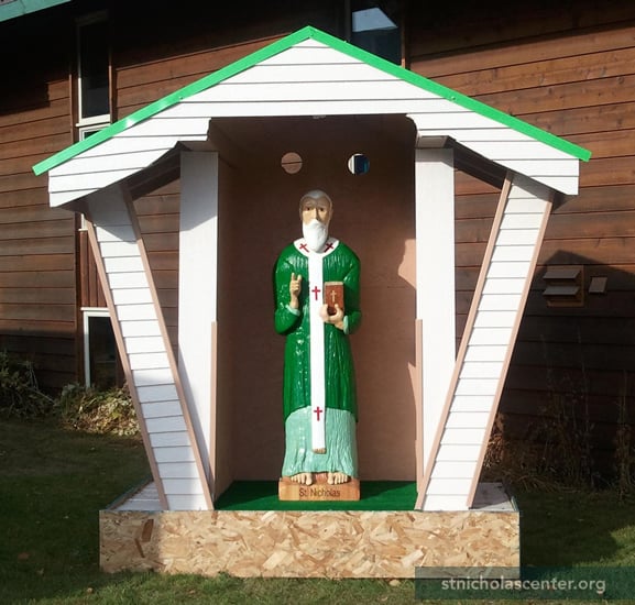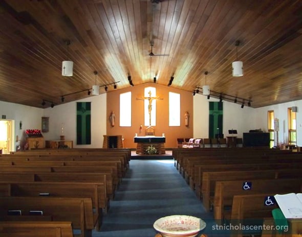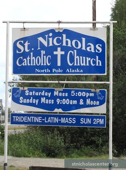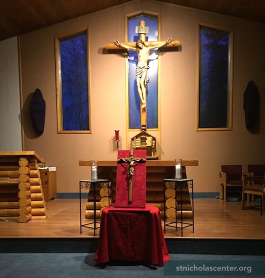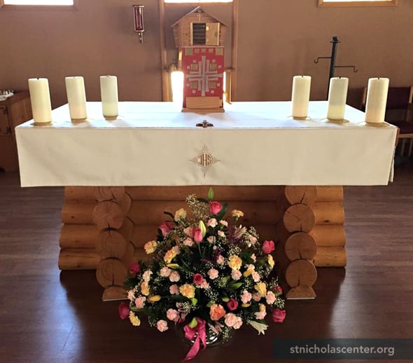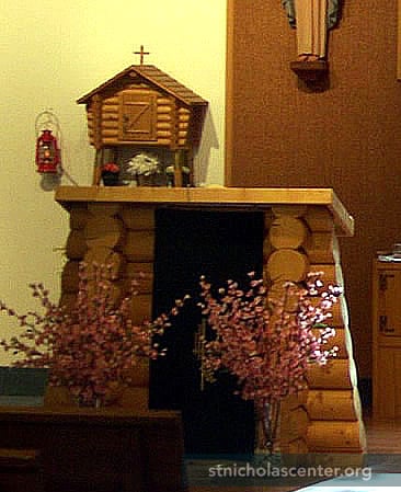 The first seeds of a Catholic parish in the North Pole area were planted in the 1950s. Growth in the 1970s from military personnel, an oil refinery and a new high school led to the establishing a permanent Catholic parish. This building, replacing worship in the community hall, was dedicated in 1978. Parishioners did much of the work on the building, including the lectern, diamond willow cross, log altar and tabernacle—styled as an Alaskan Cache.