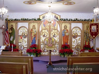 A young church, services began in 1968 when the Divine Liturgy was celebrated once a month for two Byzantine Catholic families in the Pocono area. By 1971 services were offered three times a month. They began meeting in the Pocono Summit Community Center, a small building with no heat, water, nor restrooms. In 1981 the building was moved to newly purchased land and renovated. Mila Mina, of Galeta, California, covered the entire interior with icons telling the salvation story.