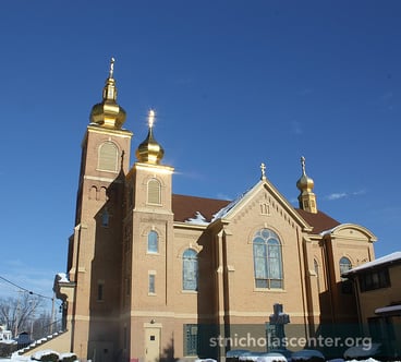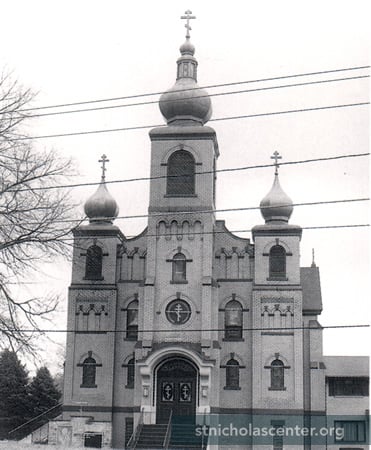 When Slavs settled in this area, they walked up to 13 miles to worship in Leisenring. This parish was organized in 1911, dedicated to St. Nicholas in gratitude for the 1907 miracle at Darr Mine. The basement was finished in 1912 and used for services until Easter 1918 when the church was completed. It features mural and crystal chandelier from Czechoslovakia. A bell from Moscow is rung in unision by two people. The church is in the National Register of Historical Places.