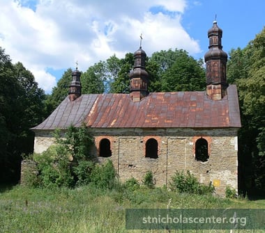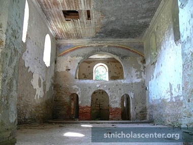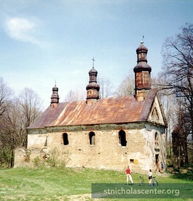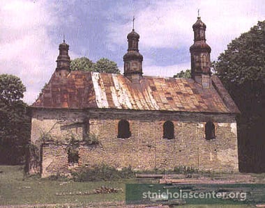 The church was built in 1843. After World War II the Lemko village was destroyed, the people killed, and the land turned into a collective farm. The church was used for agricultural storage. Before the expulsion the parish had nearly 600 people.