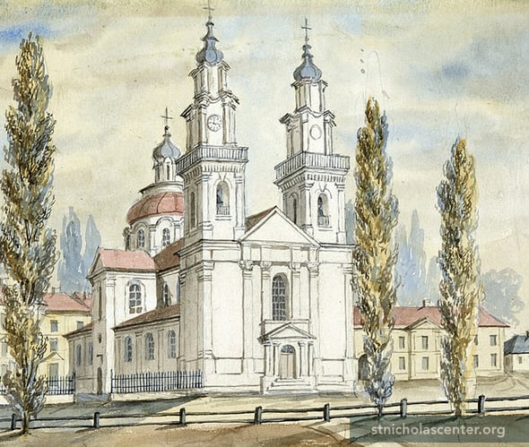 Before the 1917 Revolution, St. Nicholas Day, December 19th, was celebrated as the Day of Polotsk. The church, built in 1738, was first St. Stephen's Church. After transfer to the Orthodox, it was known as St Nicholas Cathedral. It was blown up in 1964. Residents are now trying to have the cathedral restored.