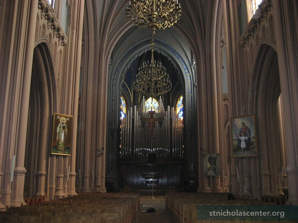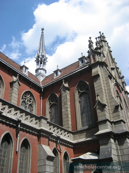 This large Polish Catholic Church was built from 1899–1909 using artificial granite, stone-like plasters, reinforced concrete, and ceramic facing tile. It was ruined in World War II and after 1945 used as an archival storehouse. After restoration in 1980 an organ was installed in place of the altar and it was used as a concert hall. After 1991 church services were held in the concert hall under the control of the city's culture department that still held concerts and festivals for organ and chamber music. St. Nicholas manna was brought from Bari in 2002 and enthroned in the church. Services are held daily; on Saturday Mass is offered in both Ukrainian and Polish. The church was to be transferred to the Roman Catholic Parish in 2024 following the "National House of Organ and Chamber Music of Ukraine" moving to the International Center of Culture and Arts of the Federation of Trade Unions, creating the House of Music. The parish has been working for 30 years for the return of the church and the court ordered its return in 2025. The church parish was granted the right to the use the church for the next 50 years, enabling badly needed maintenance and repair.