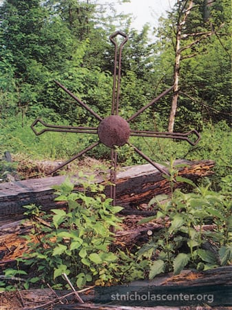 The wooden church was built in 1783. Berezka was a large village with 1500 Ukrainian residents. During the expulsion nearly 250 died, along with the priest who was brutally murdered. The church stood empty for 30 years, only providing shelter for shepherds in rainy weather. In the 1980s it caught fire from the shepherds' bonfire and burned down.