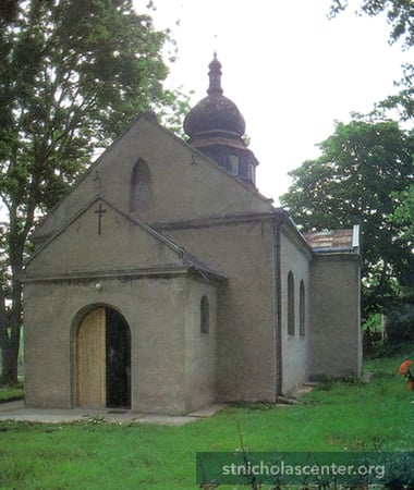 The masonry church was built in 1935 on the site of a wooden church destroyed in World War I. It was closed for many years after the expulsion of the Ukrainian residents. It is now used by Polish Roman Catholics.