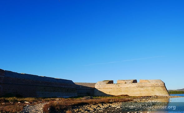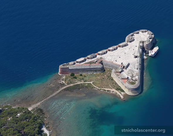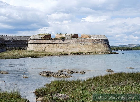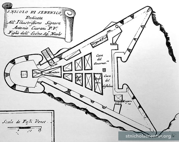 One of four Sibenik fortresses, St. Nicholas is the only one at sea. Built in the 16th century, it displaced the Benedictine Monastery of St. Nicholas that gave the fortress its name. It is on a small island at the entrance to the St. Anthony Channel. The army abandoned the fortress in 1979. It is now a UNESCO world heritage site and is undergoing significant restoration. Plans include a pedestrian walkway for access from the mainland as it's only been accessible by sea.