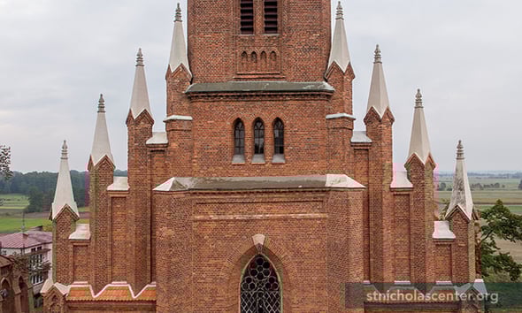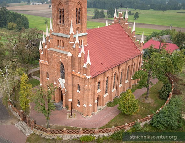 The parish was founded in the 1400s. This church was built from 1894-1902. The 25-meter tower, lower turrets, and cupola with 2.5-meter cross were added. The late 1600s baroque altar has a painting of St. Nicholas.