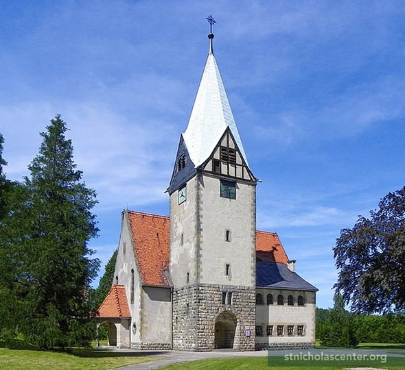 The church was built by Evangelicals in 1910. Some of the furnishings are from the old stone church, including the altar, pulpit, baptismal font, and organ prospectus.